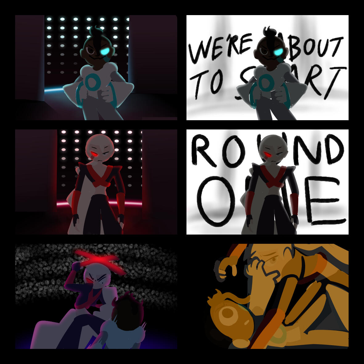 I'm certain I want to create an equally bombastic credits sequence, so, should I do a winding down scene after the fight, it will go post-credits.One idea I have is to feature the other contestants from the tournament, who would invite Kua and Mika to their table. It'll serve as a tease to the greater worldbuilding....but, introducing extra characters in the very last scene, without context, may be bad for a self-contained film.