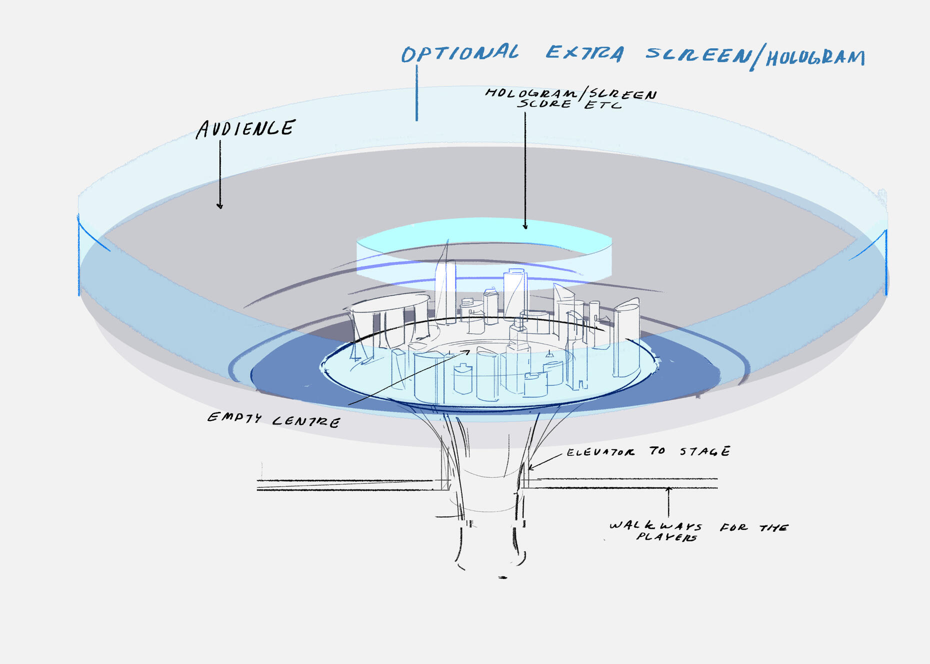 There was an attempt to create a stage design myself. Alas, I looked for someone else to work on it for me. But here's what I came up with.